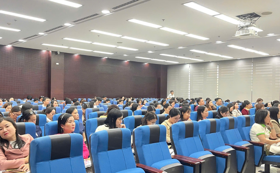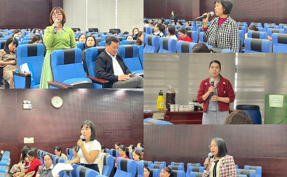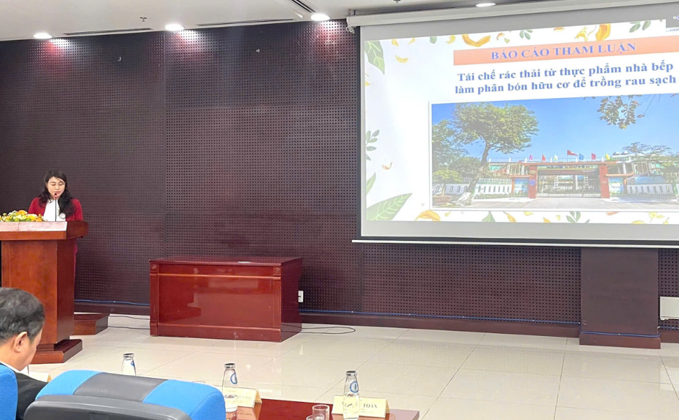 Đại diện Lãnh đạo Trường Mầm non Vành Khuyên chia sẻ kinh nghiệm xử lý chất thải thực phẩm phát sinh tại nhà trường