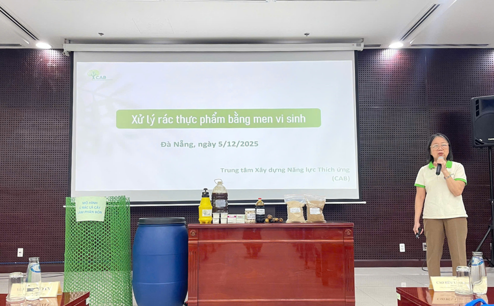 Đại diện Lãnh đạo Trung tâm Nghiên cứu Xây dựng năng lực thích ứng hướng xử lí chất thải thực phẩm bằng men vi sinh