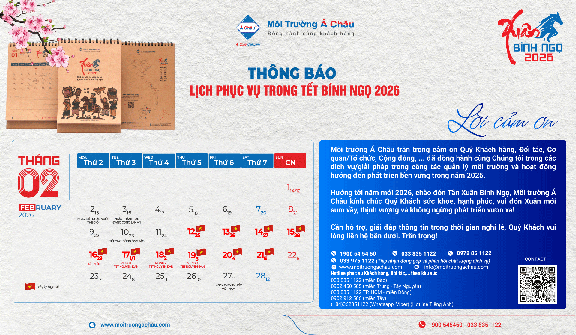 Hướng tới năm mới 2026, chào đón Tân Xuân Bính Ngọ, Môi trường Á Châu kính chúc Quý Khách sức khỏe, hạnh phúc, vui đón Xuân mới sum vầy, thịnh vượng và không ngừng phát triển vươn xa!